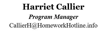 Email us at ask@homeworkhotline.info or call 615-298-6636 for more information.